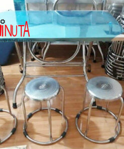 + Sản phẩm bàn ăn công nghiệp kết hợp với ghế đôn inox hoặc ghế inox sử dụng trong phòng ăn nhà máy khu công nghiệp, nhà ăn tập thể như trường học, bệnh viện…