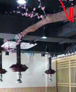- Có chao đèn trang trí màu đồng và đèn nét bên trong