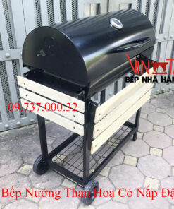 2: lò nướng than ngoài trời, bếp nướng bbq home chân cao có nắp đậy